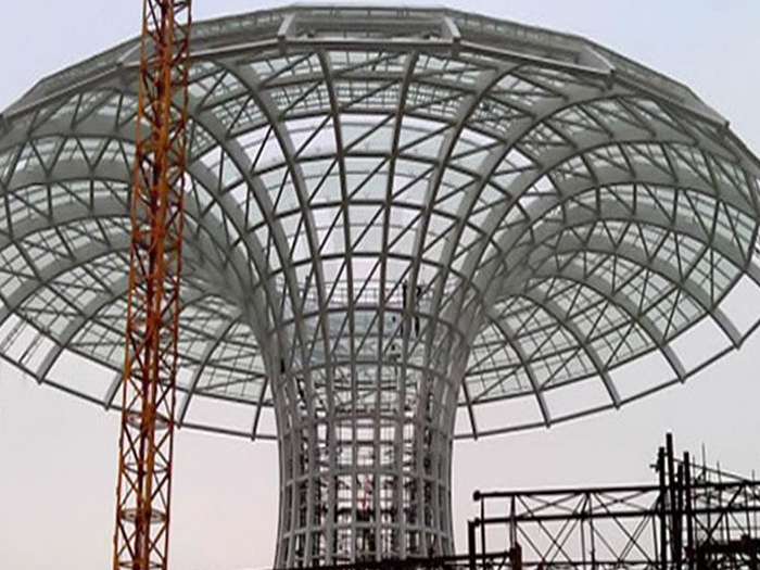 二、球形网架结构因其结构新颖,受力合理,自重轻、用钢量低等优点。如大型体育场馆球形巴彦淖尔螺栓球网架、公共场馆球形网架、电厂巴彦淖尔螺栓球网架、水泥工业球形网架、仓储物流球形网架、巴彦淖尔干煤棚工业球形网架、巴彦淖尔收费站巴彦淖尔加油站球形网架、展览中心、影剧院、商场、航站楼、候车厅、工厂巴彦淖尔车间、仓库、电视塔等球形螺栓球节点网架。国内球形网架结构主要分为:巴彦淖尔焊接球节点网架及螺栓球节点网架两种。螺栓球节点网架其构件工厂内加工量较大,现场安装便捷,适用于现场工期紧,巴彦淖尔施工条件、用电量受制约,网架形状复杂、巴彦淖尔杆件定位困难的异形结构。螺栓球节点球形网架系统基本由巴彦淖尔杆件、螺栓球、支撑支座等组成。按照节点形式可分为交叉巴彦淖尔桁架体系、四角锥体系、三角锥体系等。支撑方式多为固定支座支撑。对于大面积、大跨度及有特殊受力或伸缩要求的网架结构可采用橡胶支座、滑移支座、球铰支座等支撑形式,以满足结构自身的受力稳定、均衡,便于内力释放等设计要求。